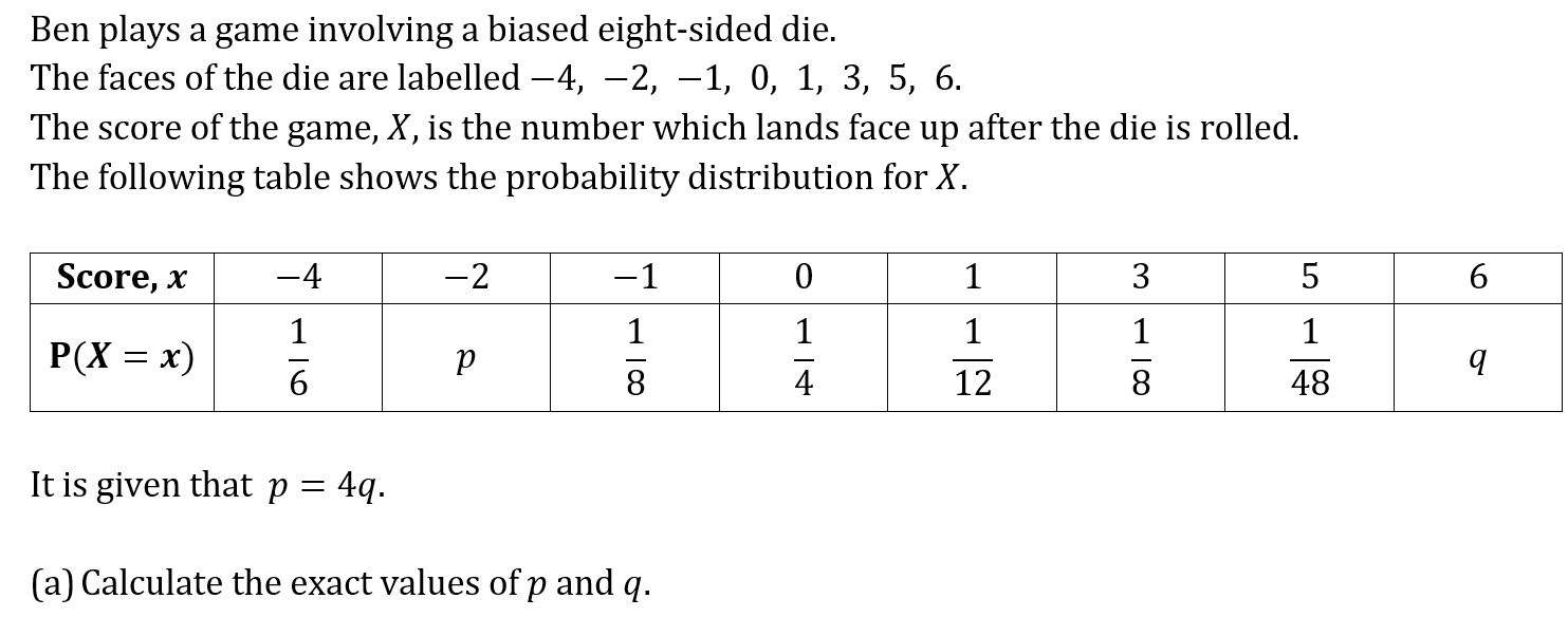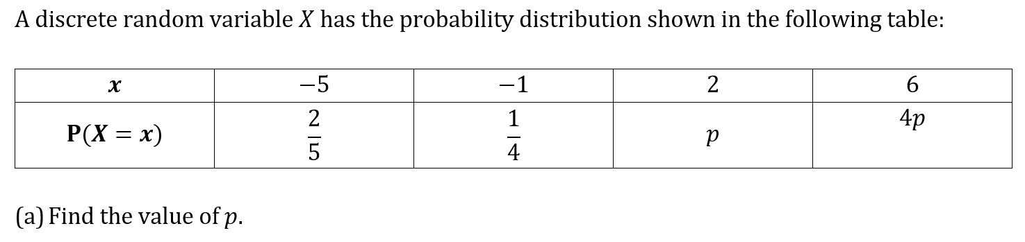 Question 6a Marks: 3 Key Concepts Discrete Probability DistributionsSolving Quadratic Equations Question 6b Marks: 3 Key Concepts Expected Values E(X) Previous QuestionNext Question