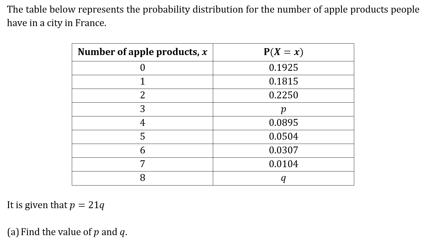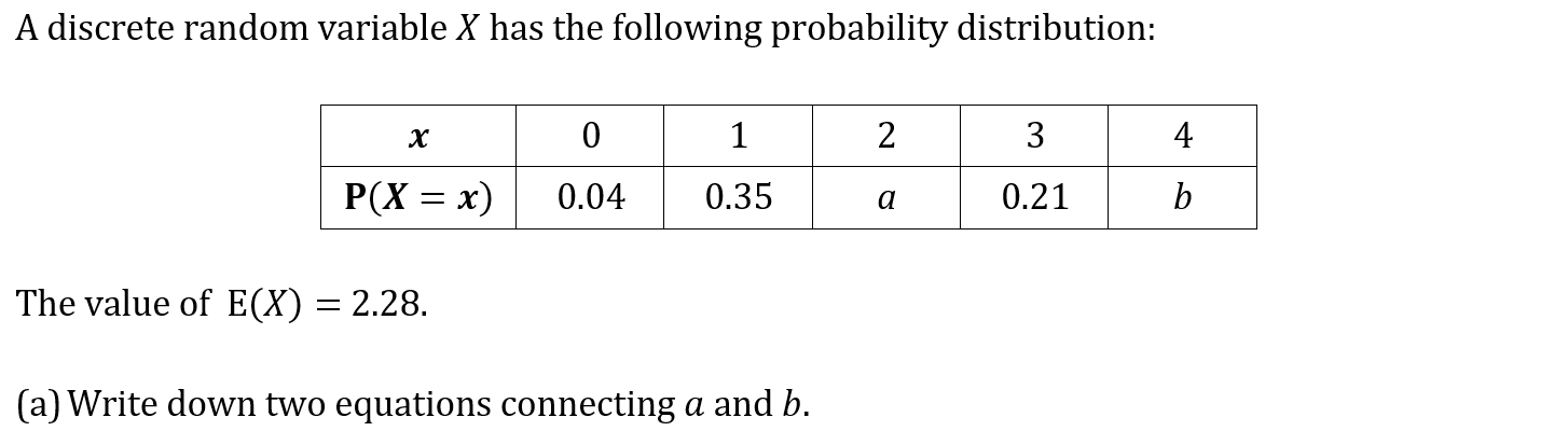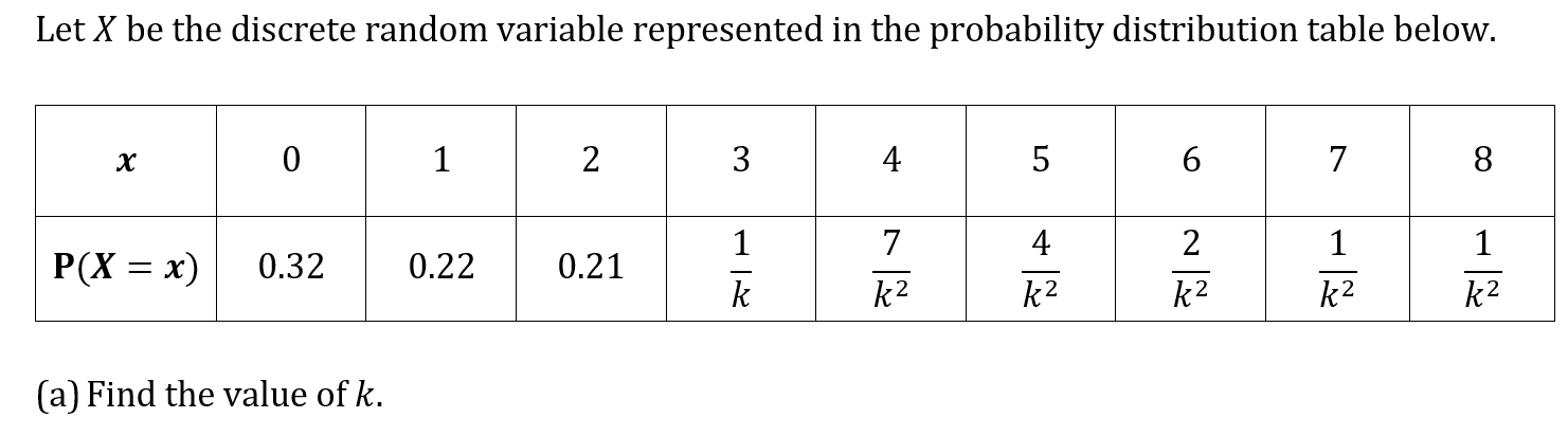 Question 3a Marks: 4 Key Concepts Discrete Probability DistributionsSolving Quadratic Equations Question 3b Marks: 3 Key Concepts Expected Values E(X) Previous QuestionNext Question