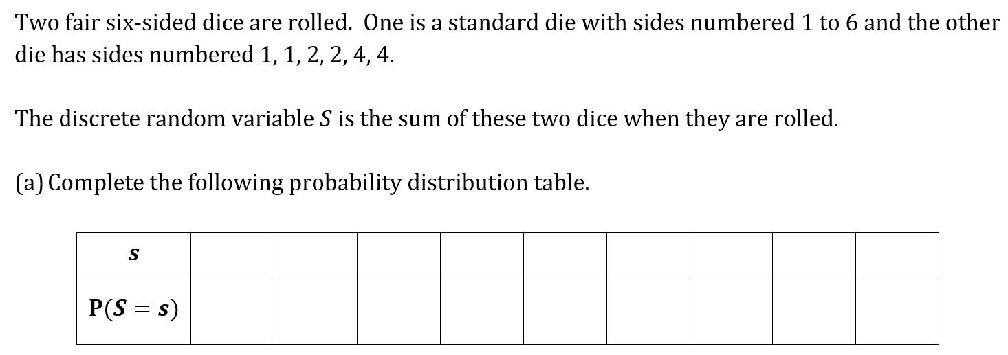 Question 10a Marks: 4 Key Concepts Probability BasicsDiscrete Probability Distributions Question 10b Marks: 3 Key Concepts Expected Values E(X) Previous QuestionNext Question
