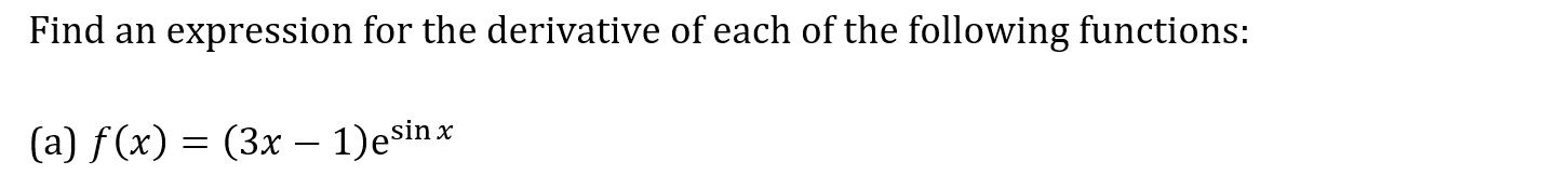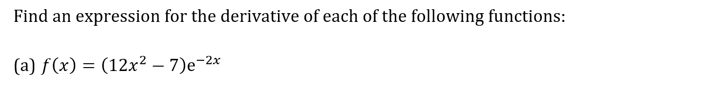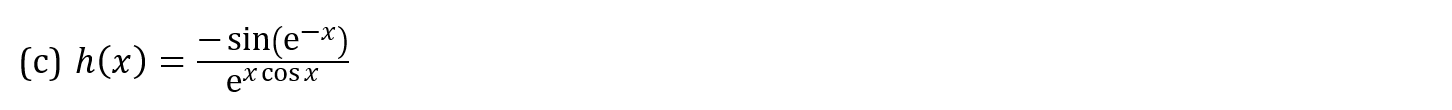 Question 1a Marks: 2 Key Concepts Product RuleDifferentiating e^x & lnx Question 1b Marks: 3 Key Concepts Quotient RuleDifferentiating Trig Functions Question 1c Marks: 3 Key Concepts Chain RuleDifferentiating e^x & lnx Next Question