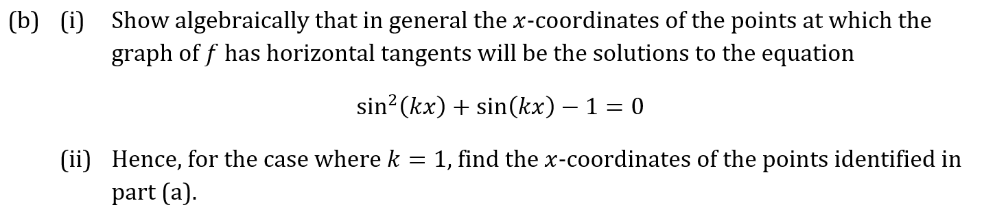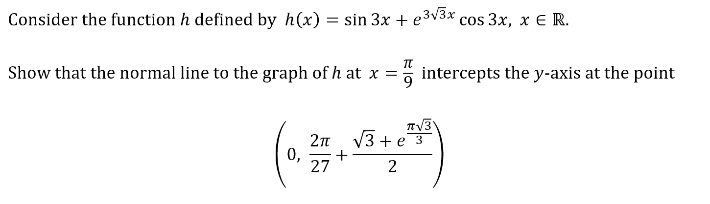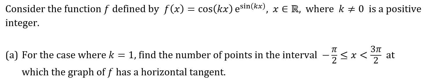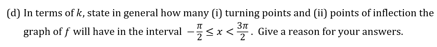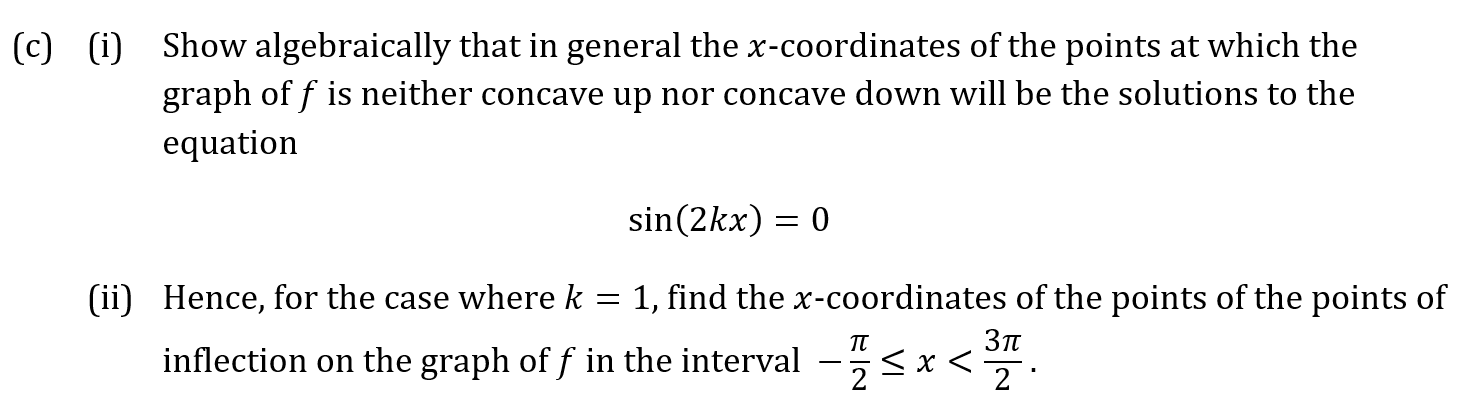 Question 7a Marks: 1 Question 7b Marks: 7 Key Concepts Chain RuleTangents & Normals Question 7c Marks: 8 Key Concepts Concavity of a FunctionPoints of Inflection Question 7d Marks: 2 Key Concepts Graphs of Trigonometric Functions Previous QuestionNext Question
