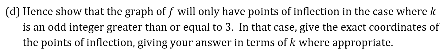 Question 9a Marks: 2 Key Concepts Chain RulePoints of Inflection Question 9b Marks: 5 Key Concepts Chain RuleSecond Order Derivatives Question 9c Marks: 2 Question 9d Marks: 7 Key Concepts Points of Inflection Previous Question