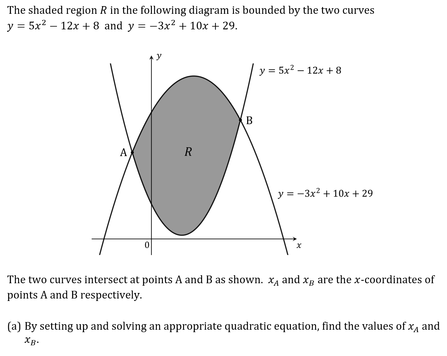 Question 7a Marks: 4 Key Concepts Intersecting GraphsSolving Quadratic Equations Question 7b Marks: 6 Key Concepts Area Under a Curve BasicsDefinite Integrals using GDC Previous QuestionNext Question