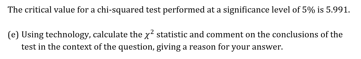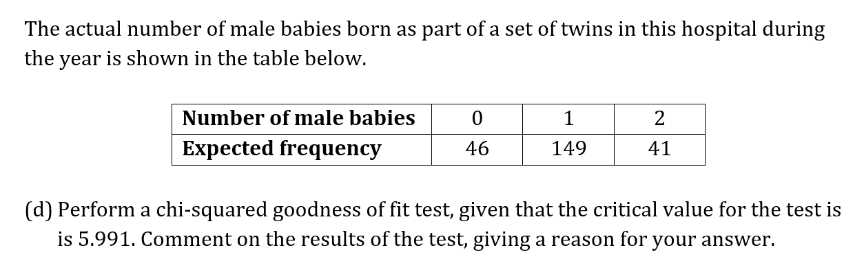 Melanie still suspects that the data can be modelled using a binomial distribution. A goodness of fit test is to be used with a 5% significance level to test Melanie’s suspicion.