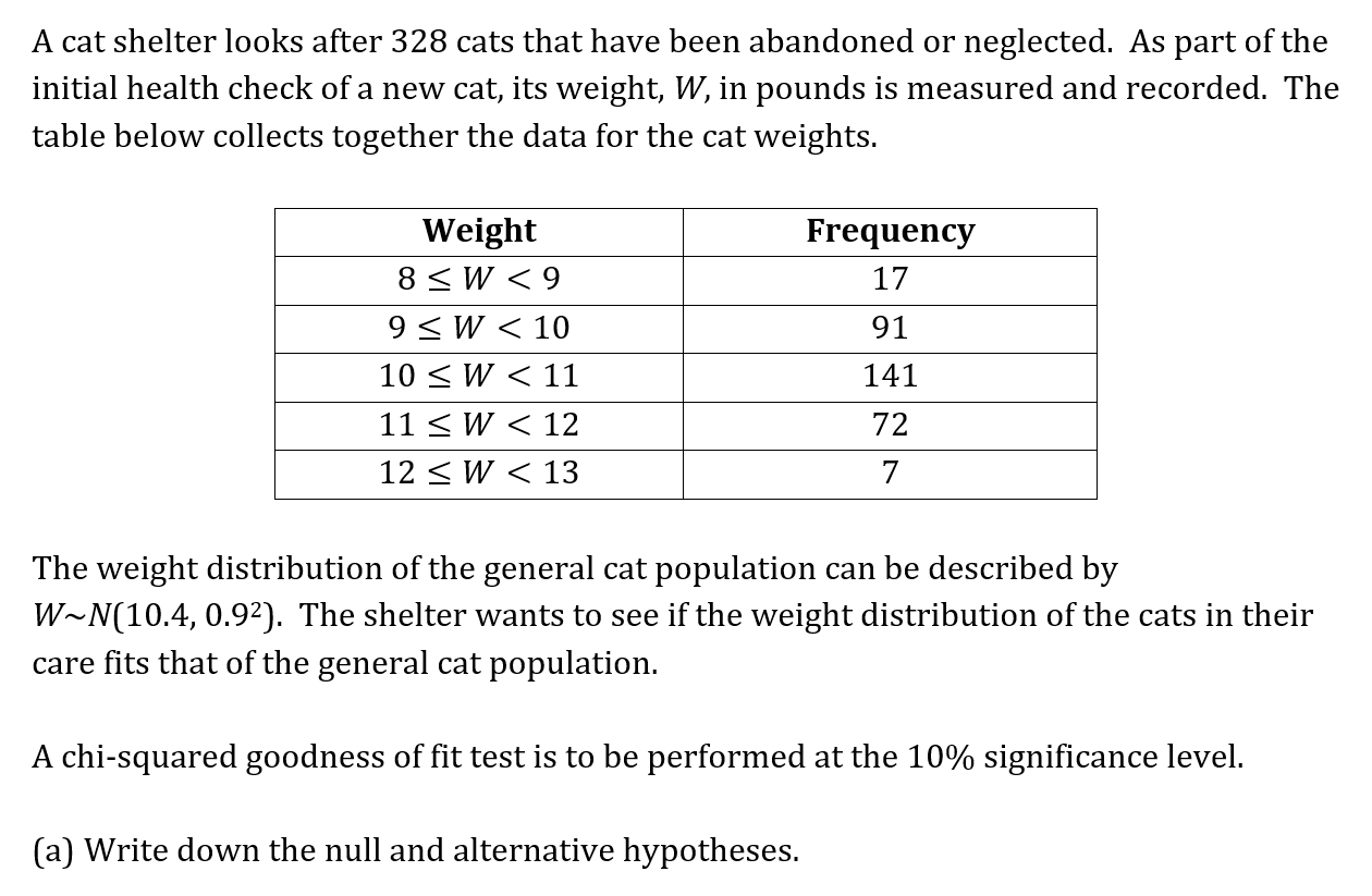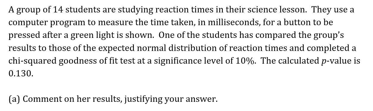 Gordon wants to use a goodness of fit test with a 10% significance level to see whether the journey times can be modelled by a normal distribution.