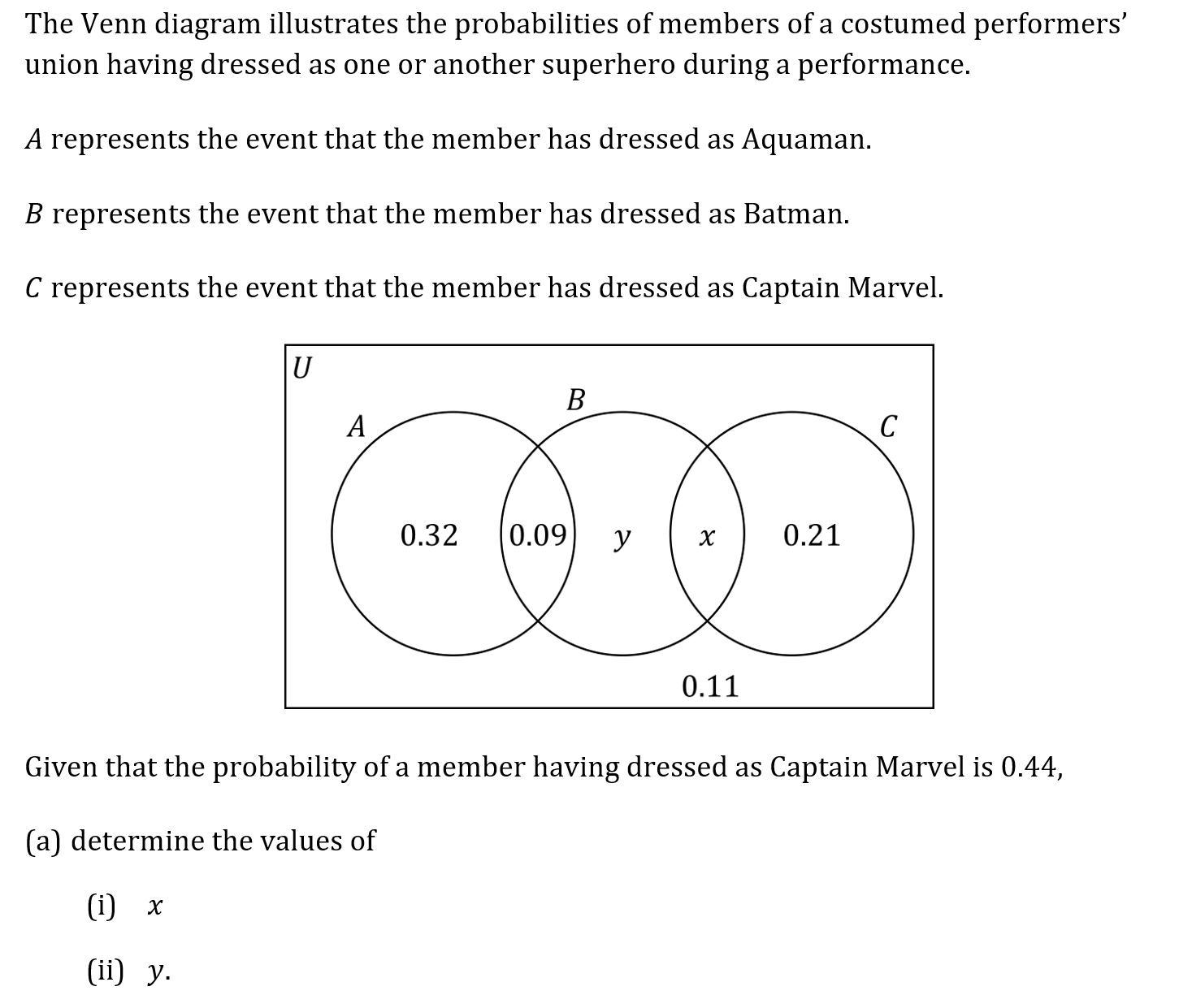Question 3a Marks: 2 Key Concepts Venn Diagrams Question 3b Marks: 10 Key Concepts Venn DiagramsConditional Probability Previous QuestionNext Question