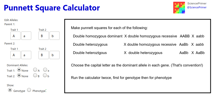 See the Punnett square instantly. Make a collection of screenshots. Write a statement next to each image.