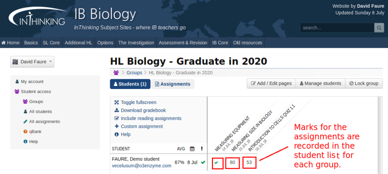 This page shows you how to set three types of assignment within the student access of the InThinking Biology website.