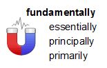 * 'fundamentally' and 'essentially' introduce the idea of grasping the central meaning of an argument - the key concept or the underlying theory (considered summary, rather than the 'first glance' summary implied in 'basically', above)