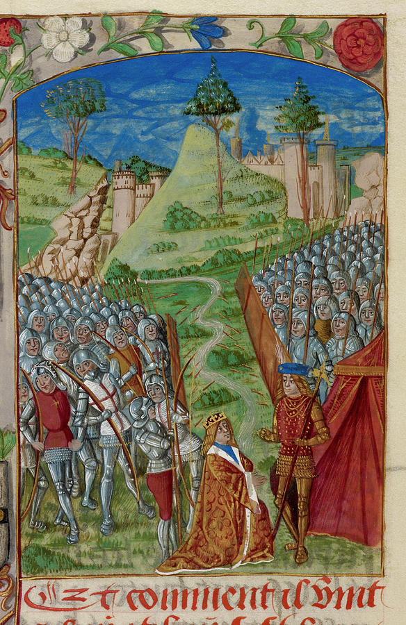 [Richard I paying homage to Philip for Normandy. Source: Chroniques de France ou de Saint Denis. Originally published/produced in France (Paris?); 1487, MS Royal 20 E.III, f.155v / Courtesy of the British Library archives]