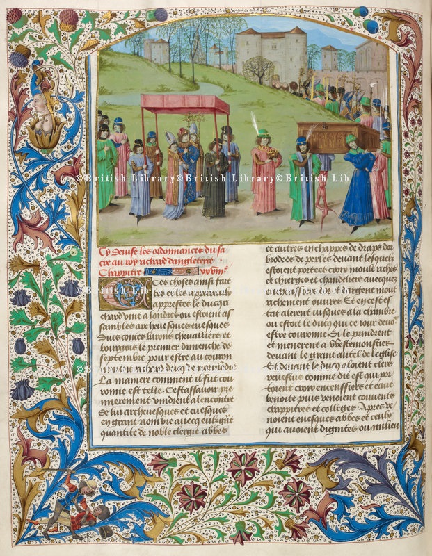 [The Coronation Procession of Richard I with the Barons of the Cinque Ports (Kent and Sussex), MS Royal 15. E. IV, fol.257v / courtesy of the British Library archive].