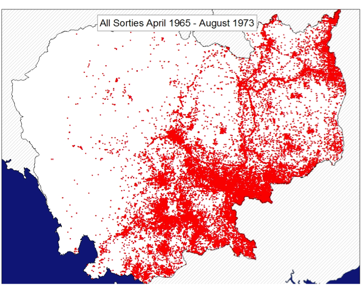 Map showing sites of bombing in Cambodia, 1965 - 1973