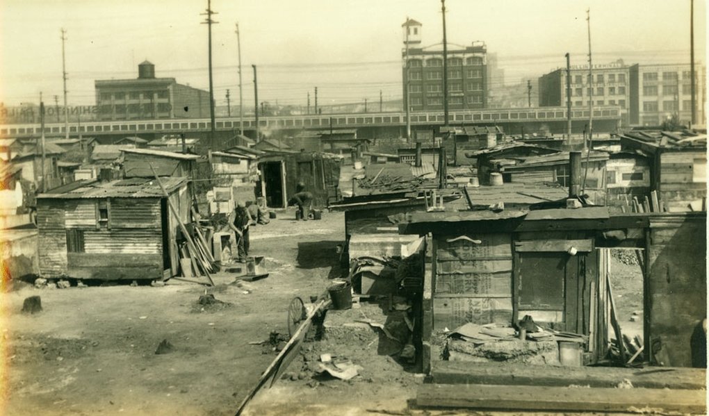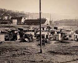 In every city, Hoovervilles developed. This was a shanty town of quickly built huts made from corrugated iron and other bits of rubbish that people could find.