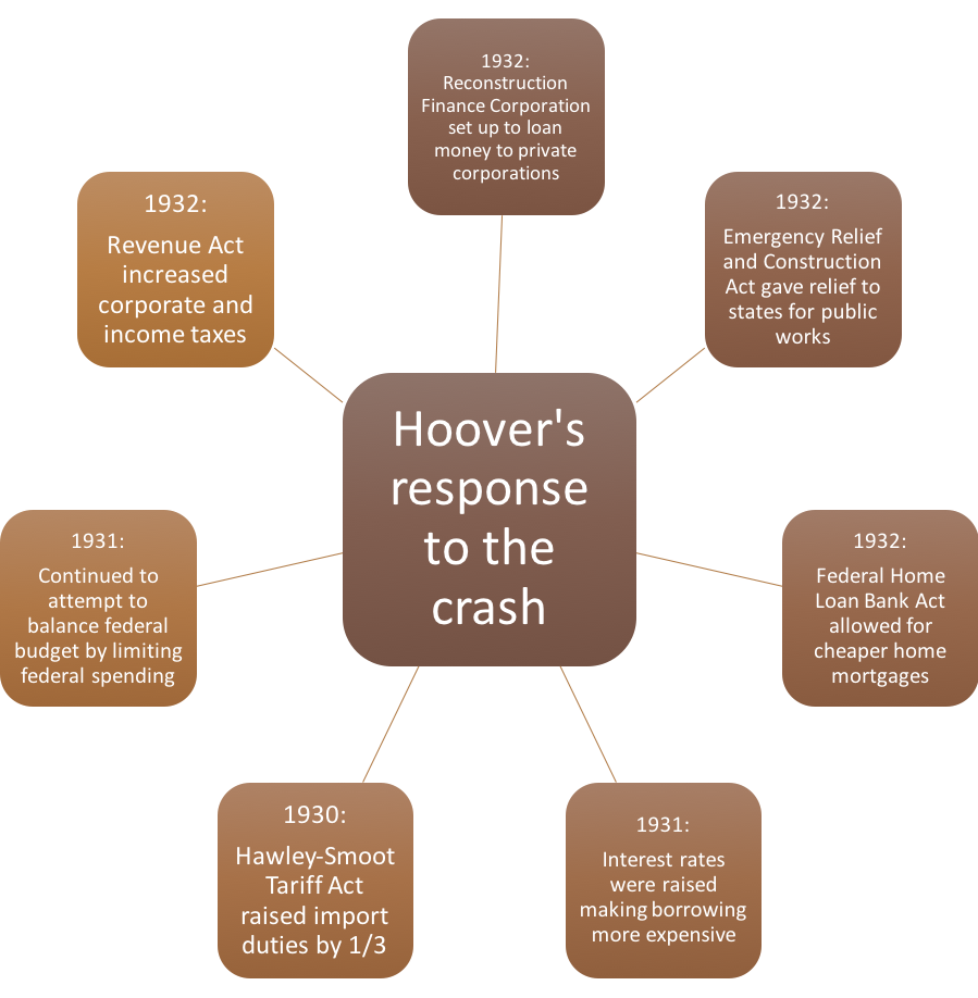 However, although you have considered the ways in which President Hoover’s response to the depression was ineffective, it should be taken into account that he faced an unprecedented economic crisis – a situation that was much more complex and severe than previous economic slumps. In addition, there is evidence to suggest that some of the measures he took were in fact effective.