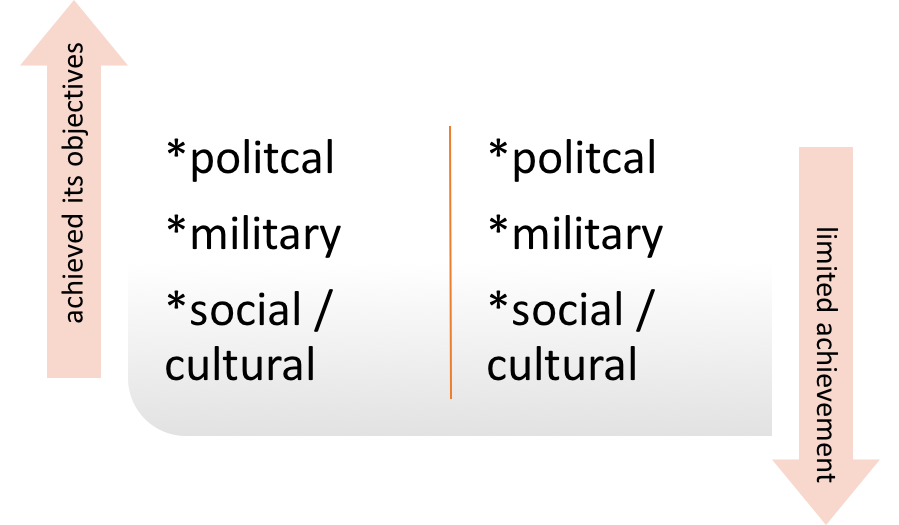 In pairs make a copy of the chart below and add evidence and historiography to support the line of argument that the occupation a] achieved its objectives b] limited achievement