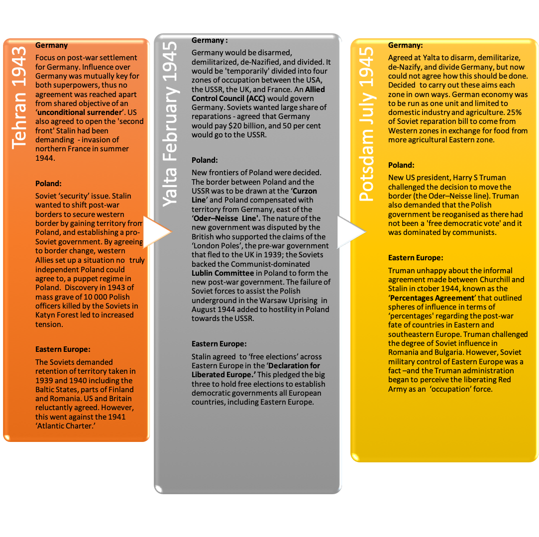 - The decisions made at Yalta and Potsdam (see chart on the Conferences above)