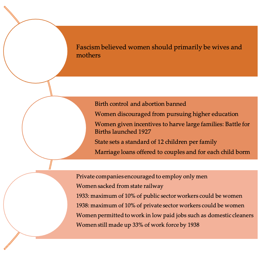 The Fascist perspective on the role of women was traditional and in many ways in line with the Church’s views.